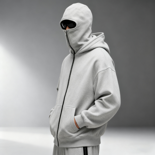 Mens Balaclava Hoodie Double Hooded Zip Jacket