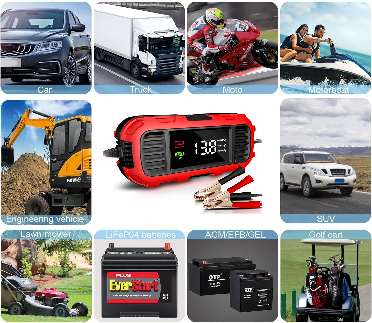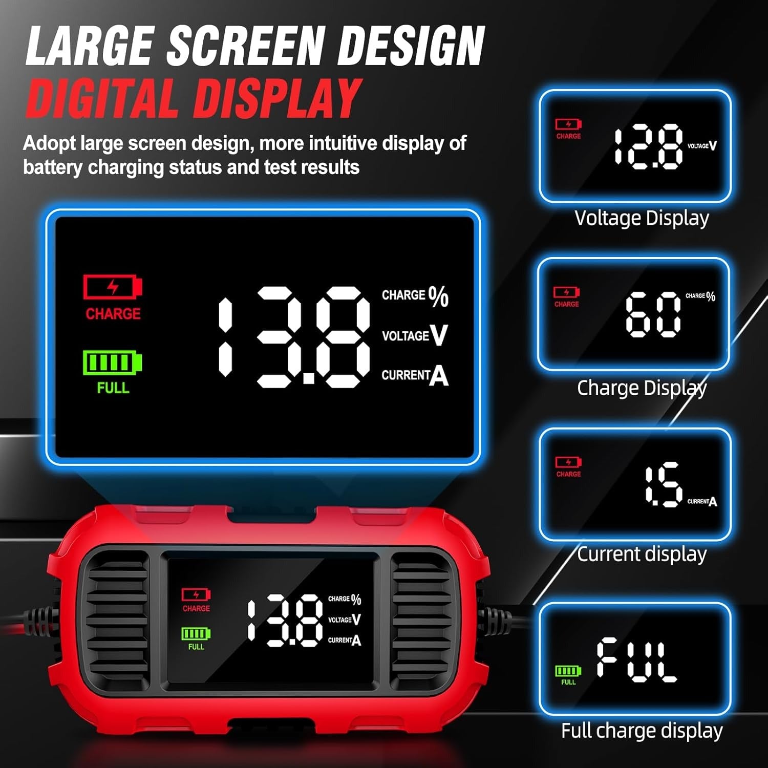 - Universal Compatibility: Works seamlessly with all 12V lead-acid batteries, including AGM, GEL, and standard flooded batteries, making it a versatile tool for various vehicles and equipment.