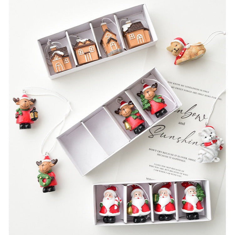 🎄 Christmas is all about the sweet little details that fill your home with joy. Our 4PCS Mini Resin Christmas Tree Pendant set—featuring four cozy houses, four playful dogs, four cute cats, four graceful elks, and four jolly old men—is exactly the festive touch your holiday decor needs. Each tiny resin piece carries the warmth of the season, turning your Christmas tree into a storybook of holiday happiness.