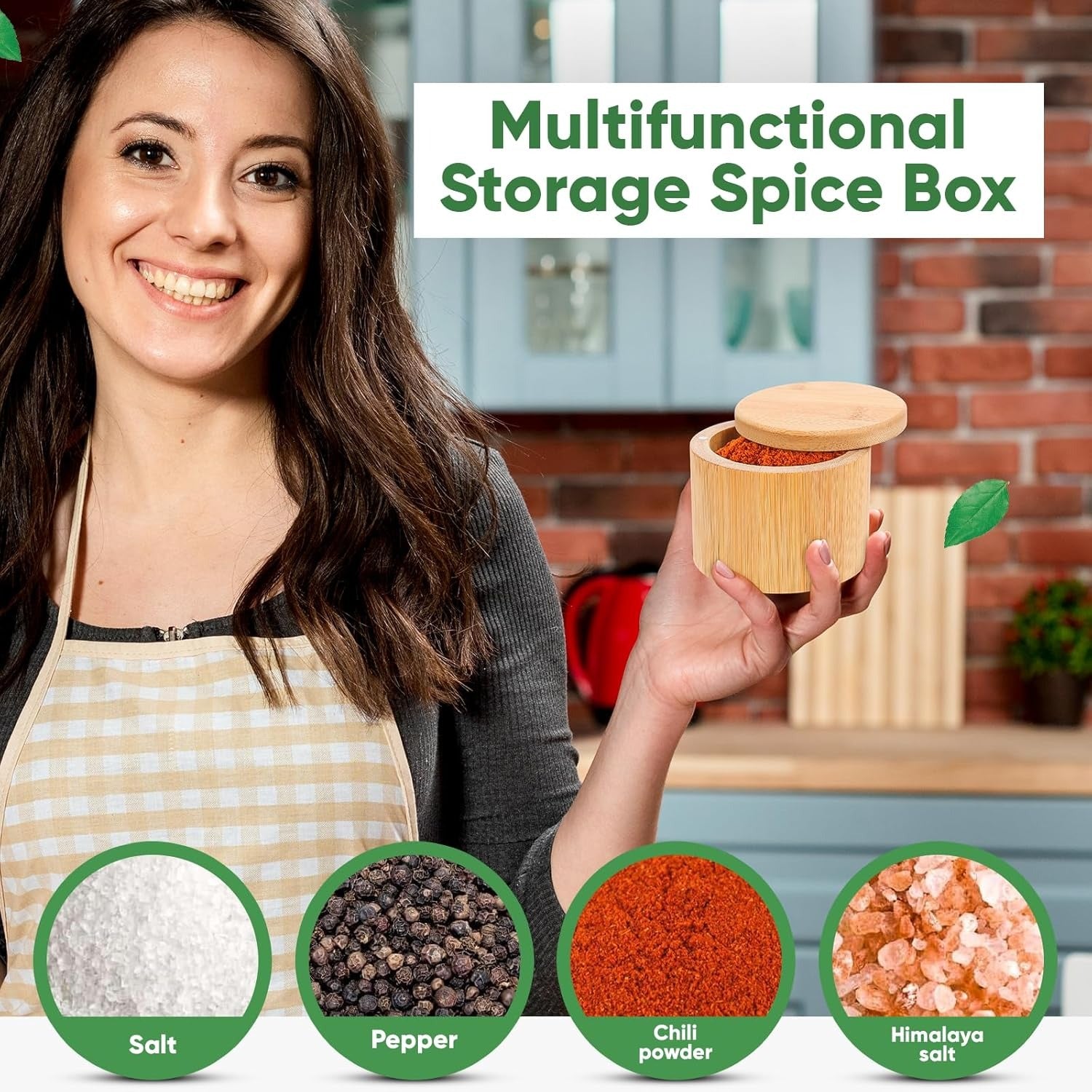 - Natural Material : This salt cellar is made of natural and environmentally friendly bamboo. It has a capacity of 6 ounces, with a diameter of 3.5 inches and a height of 2.8 inches. The surface is fine and smooth, and it is sturdy and durable, adding a touch of natural elegance to your kitchen.