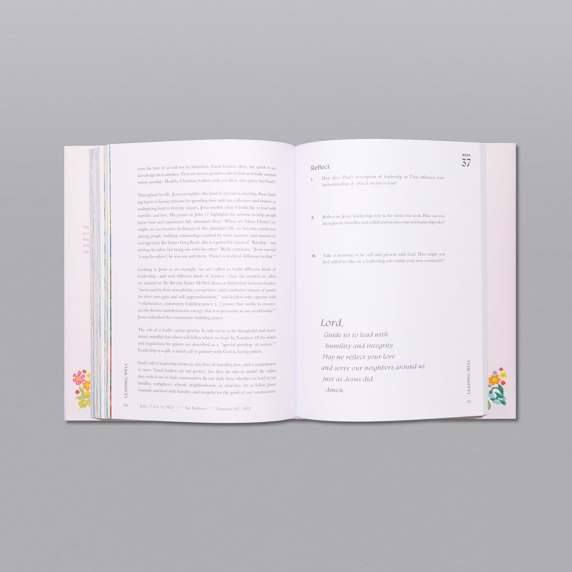 Study the Entire Bible in One Year: With suggested readings for each day of the week, and thoughtful prompts to invite deeper reflection, this book invites us to explore the story of scripture with fresh eyes and focused intention. Explore topics such as: