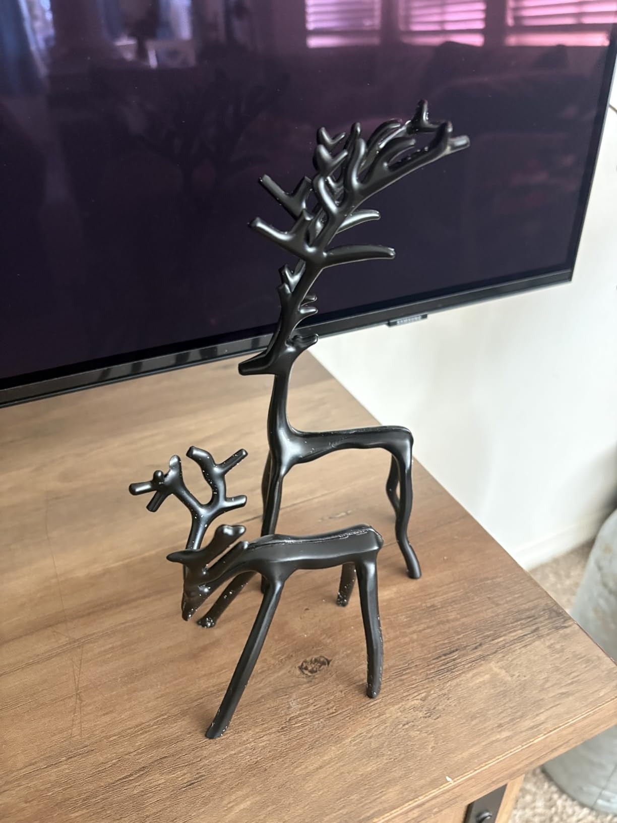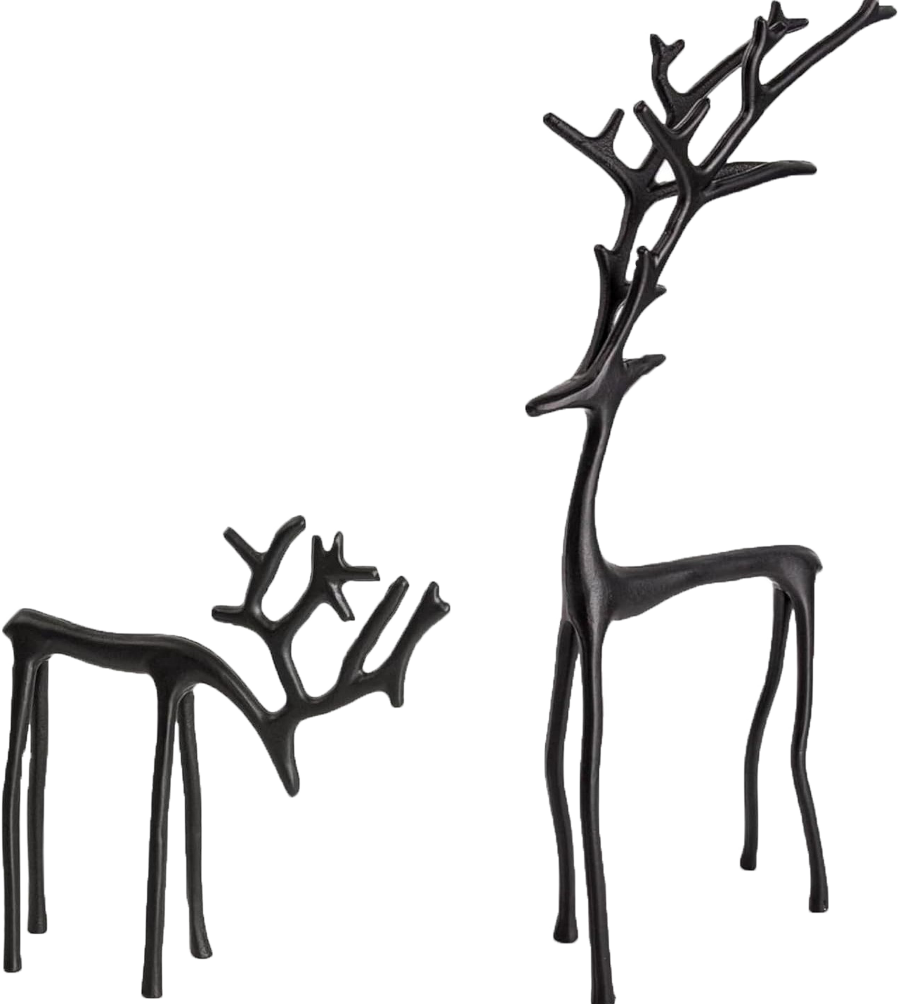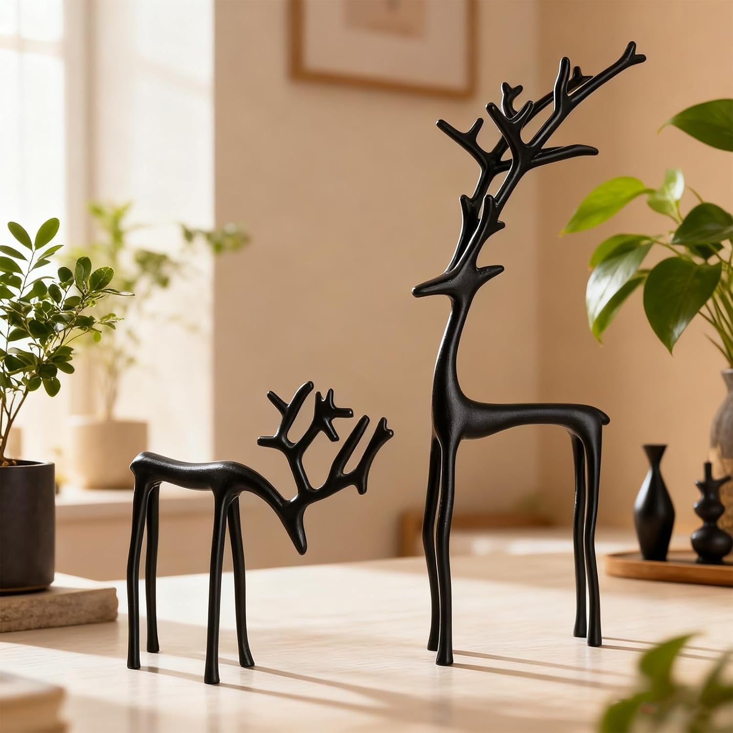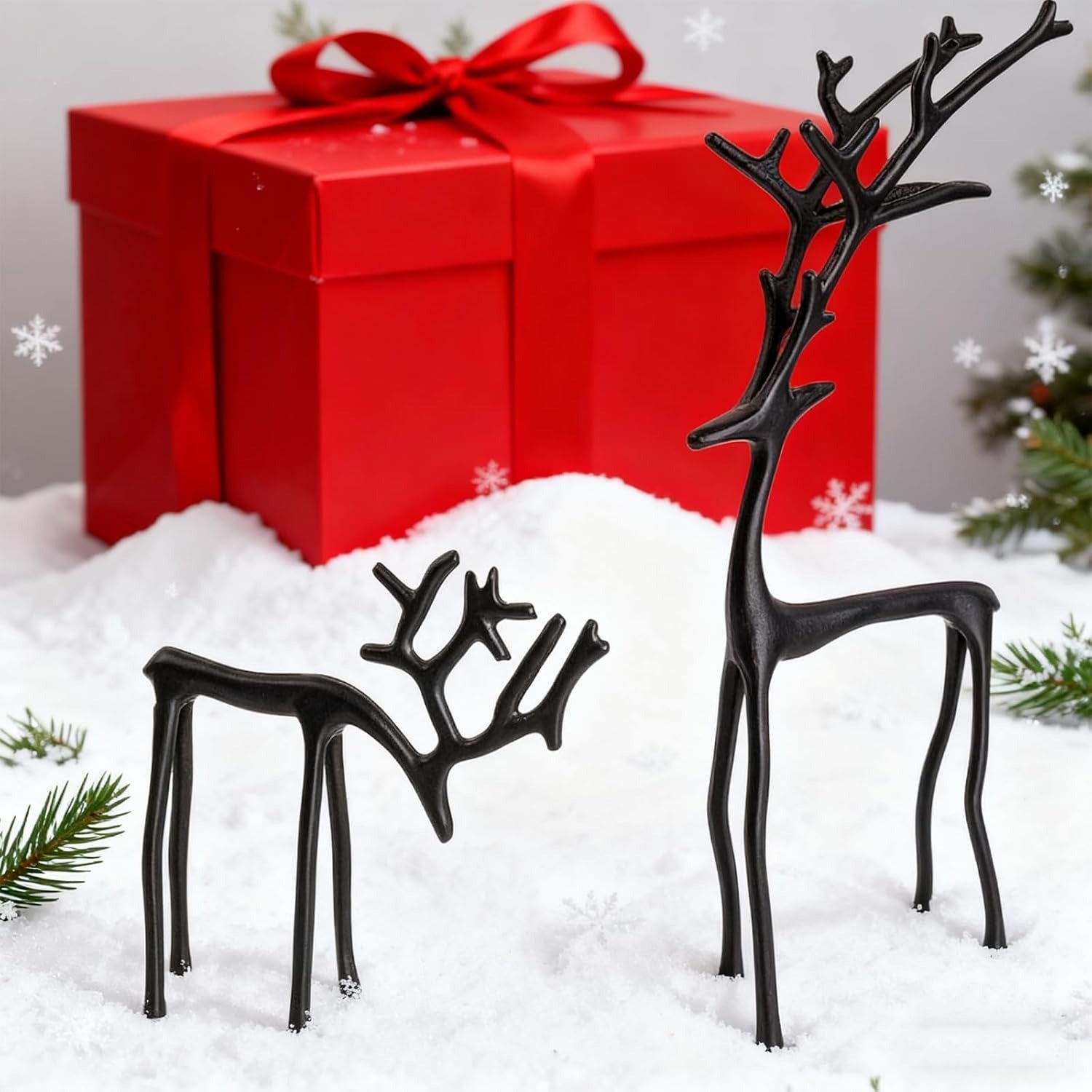 🦌Christmas Decorations: Set of 2 Black Reindeer Statues – Elegance for Your Holiday