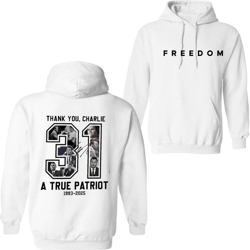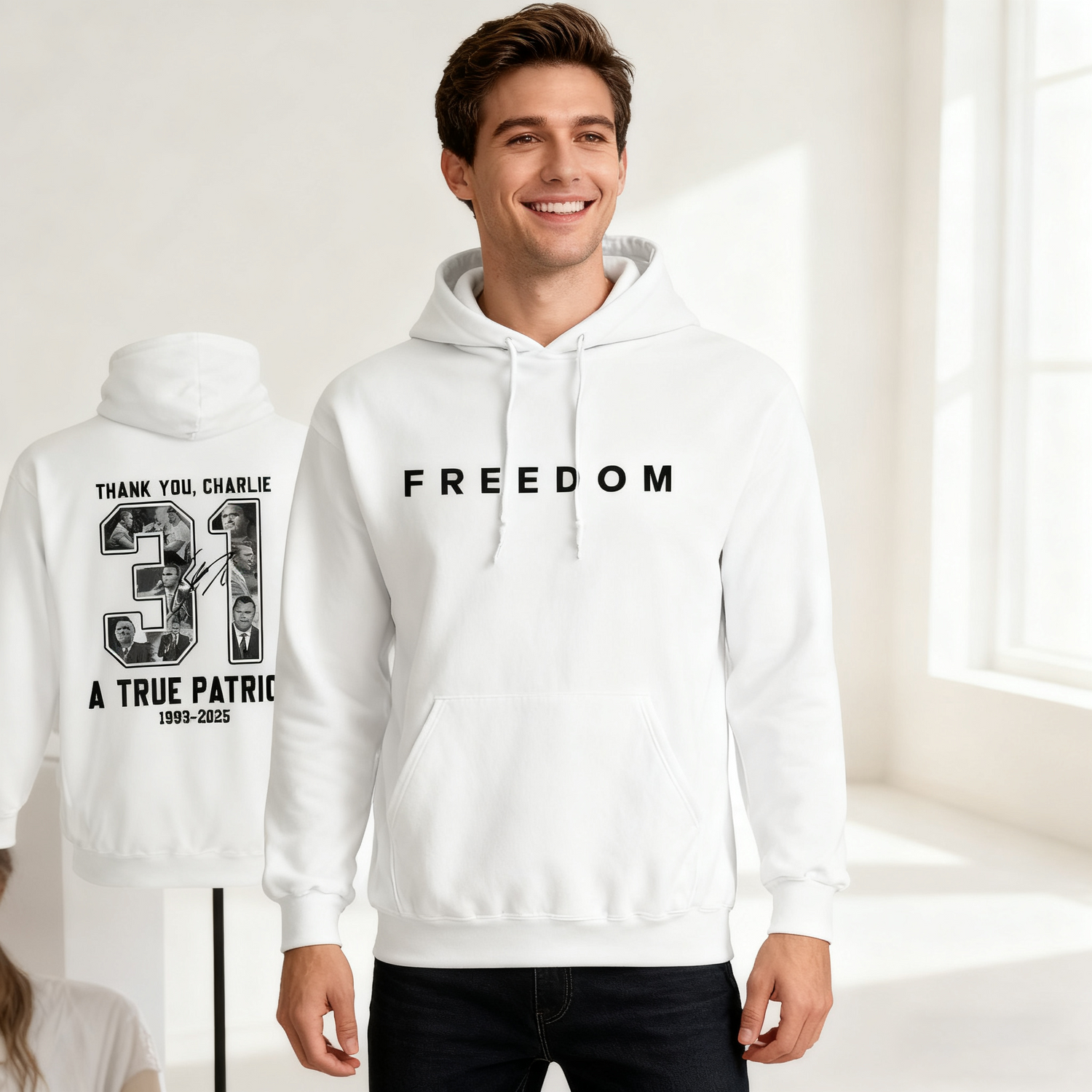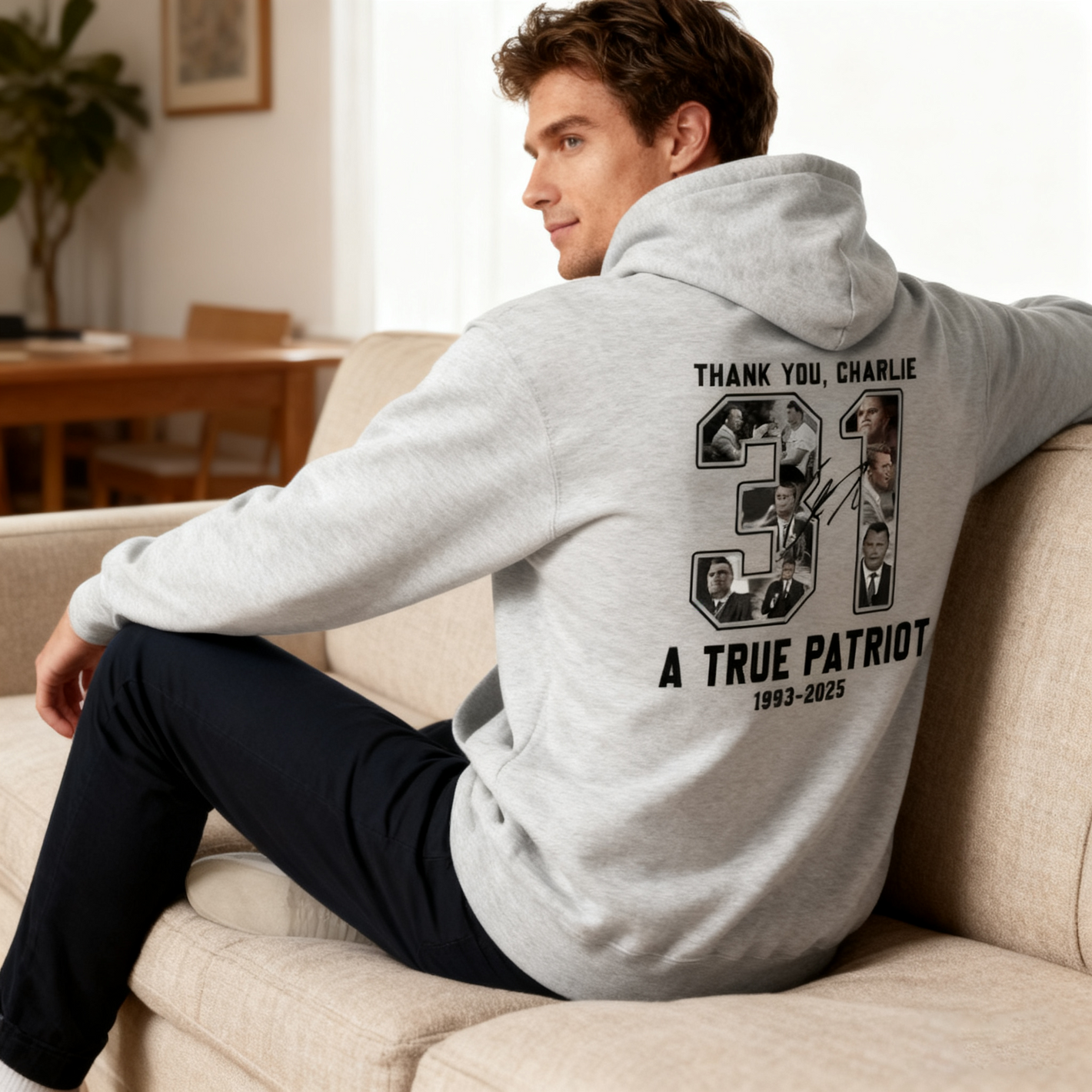 Pay homage to a true patriot with our exclusive "Thank You, Charlie" commemorative hoodie, crafted from 100% premium cotton for unmatched comfort and durability. This piece blends heartfelt design, all-natural softness, and timeless style—a wearable tribute for those who honor courage, dedication, and legacy.