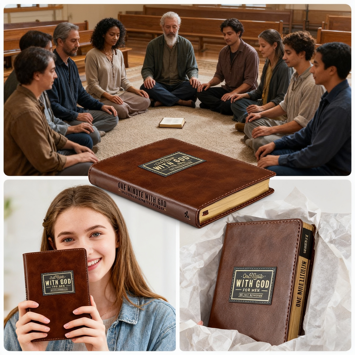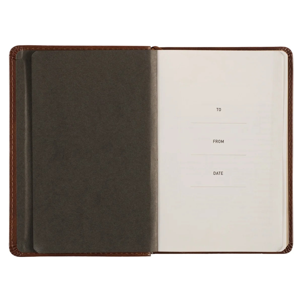 This devotional book is a meaningful gift that carries heart and purpose. Its classic brown faux leather cover and gold foil details look elegant under wrapping paper, making it suitable for any occasion: