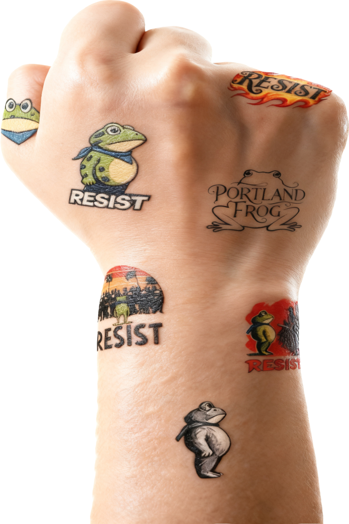 This collection features 9 distinct frog designs, each embodying a facet of fighting injustice. Every pattern tells a story of courage. Unlike generic sets, these designs are rooted in Portland’s activist heritage—let your choice reflect the cause you champion, turning your tattoo into a personalized statement of defiance.
