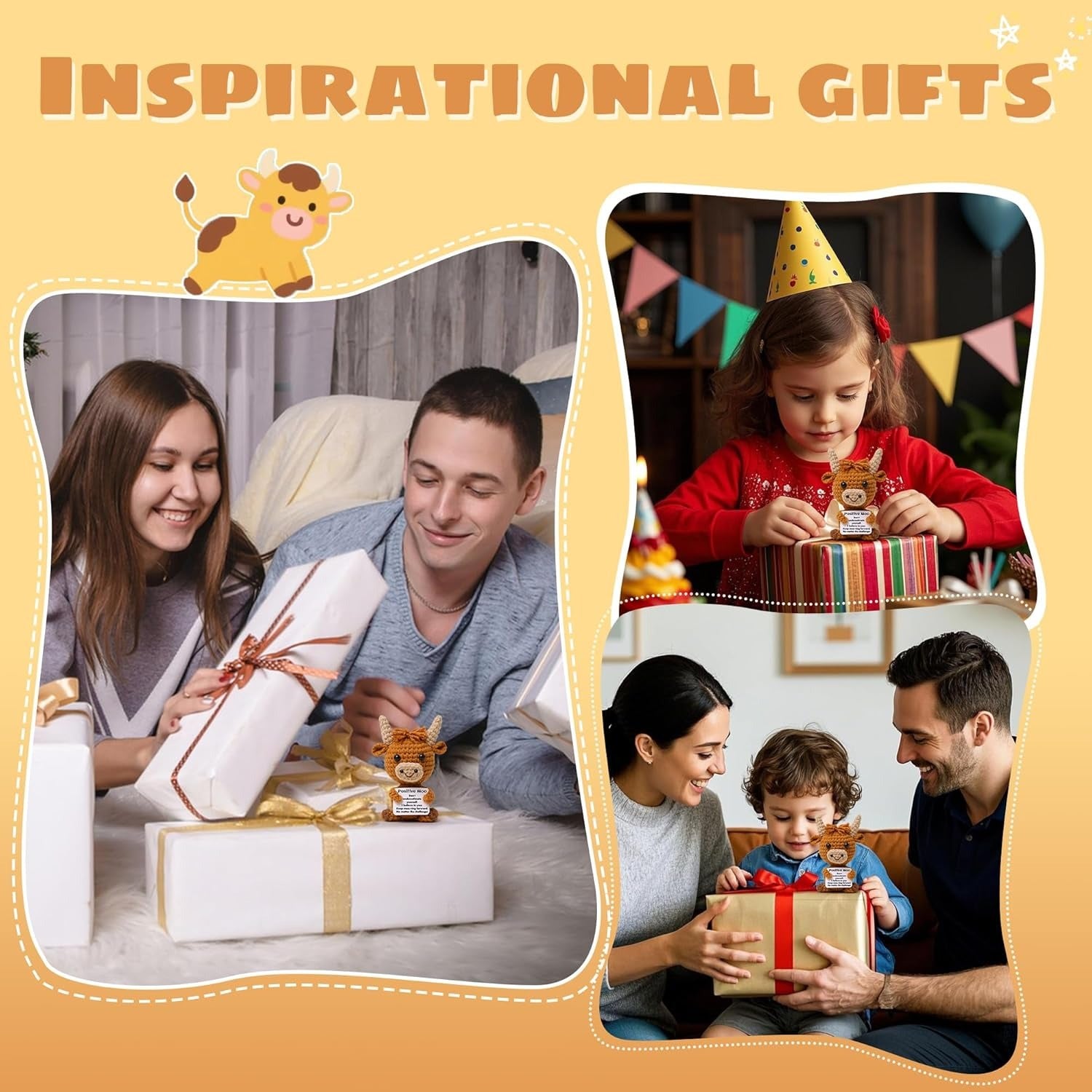 Every stitch is tight and secure, ensuring the cow holds its shape through years of play, cuddles, and display. The yarn is fade-resistant and machine-washable (on a gentle cycle), making it easy to keep clean—ideal for households with kids or pets. All details, from the horns to the eyes, are securely attached with child-safe materials, so you can feel confident gifting it to little ones ages 3 and up.