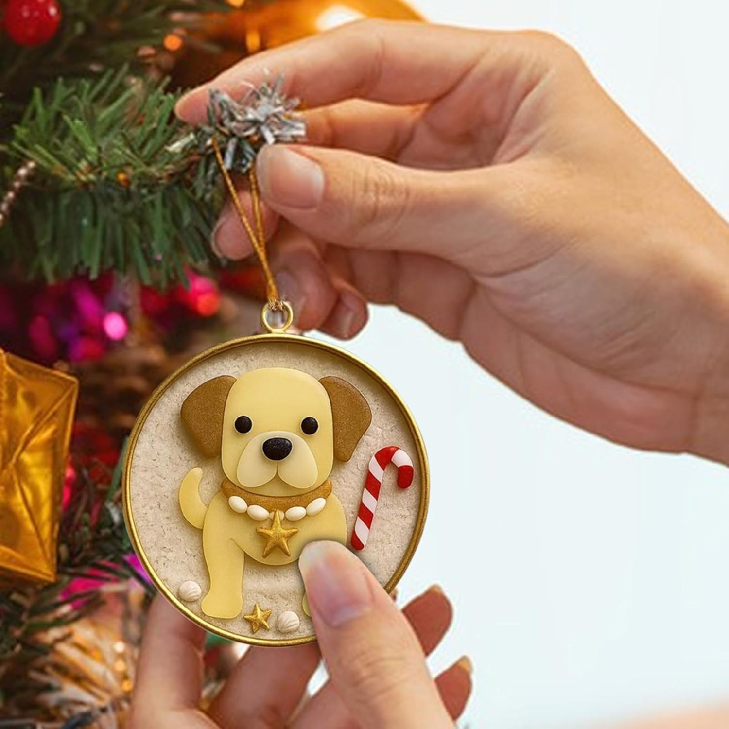 Measuring 3 inches in diameter, it’s the ideal size to fit seamlessly on any Christmas tree branch. It also works beautifully as a gift topper for pet lovers or a cute accent on holiday wreaths and garlands.