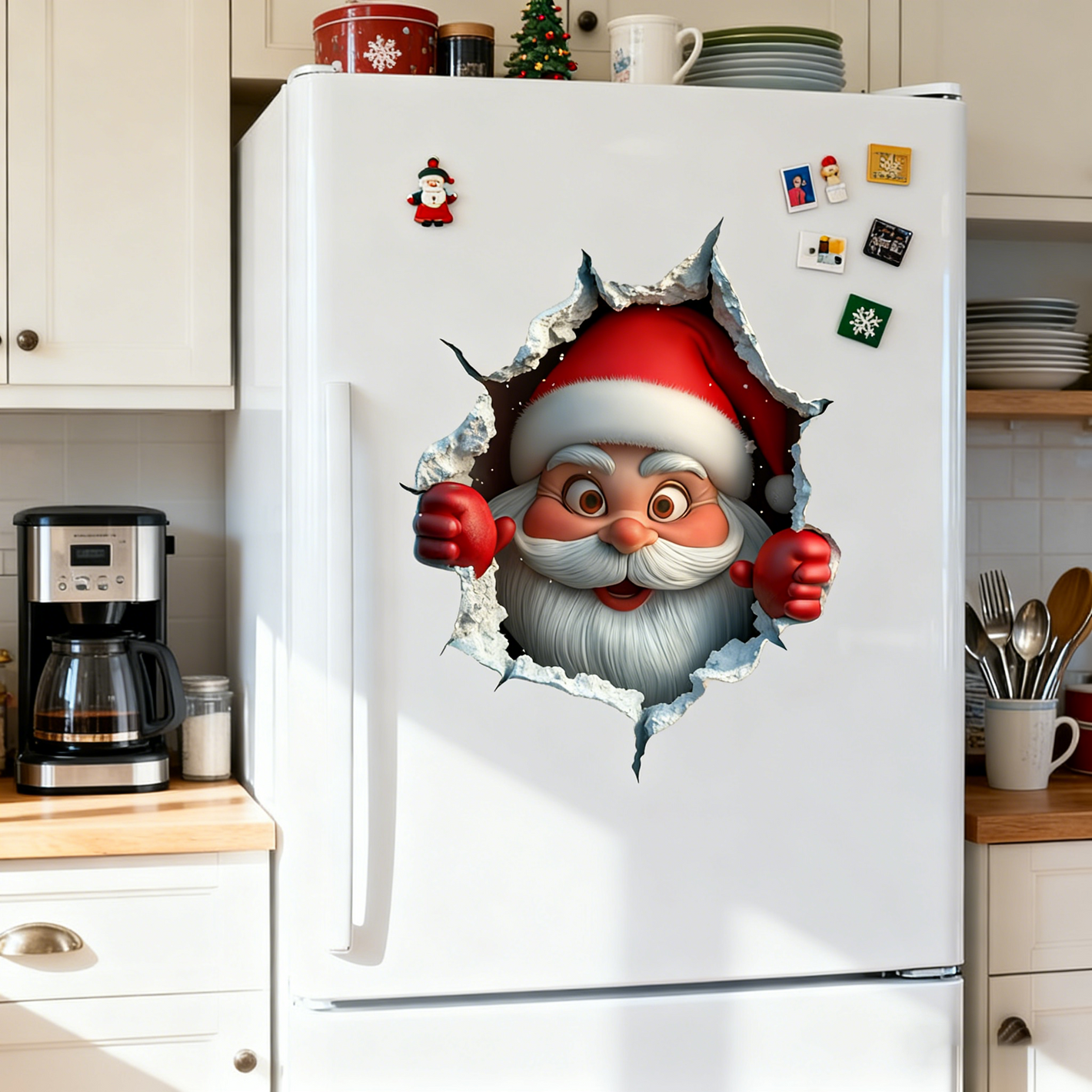 Transform your space into a whimsical Christmas wonderland with our eye-catching 3D Santa Wall Stickers—perfect for adding festive magic to kitchens, living rooms, bedrooms, or even offices!