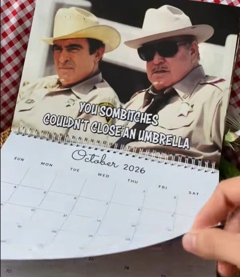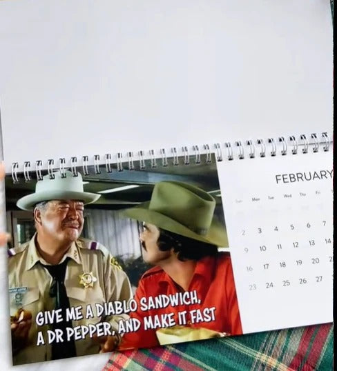 Every month pairs the imagery with the film's most legendary one-liners. Imagine starting your day with “We got a 10-33, 10-33! A sumbitch in a black Trans Am!" or ending it with the Bandit's laid-back swagger-this calendar keeps the movie's spirit talking all year long.
